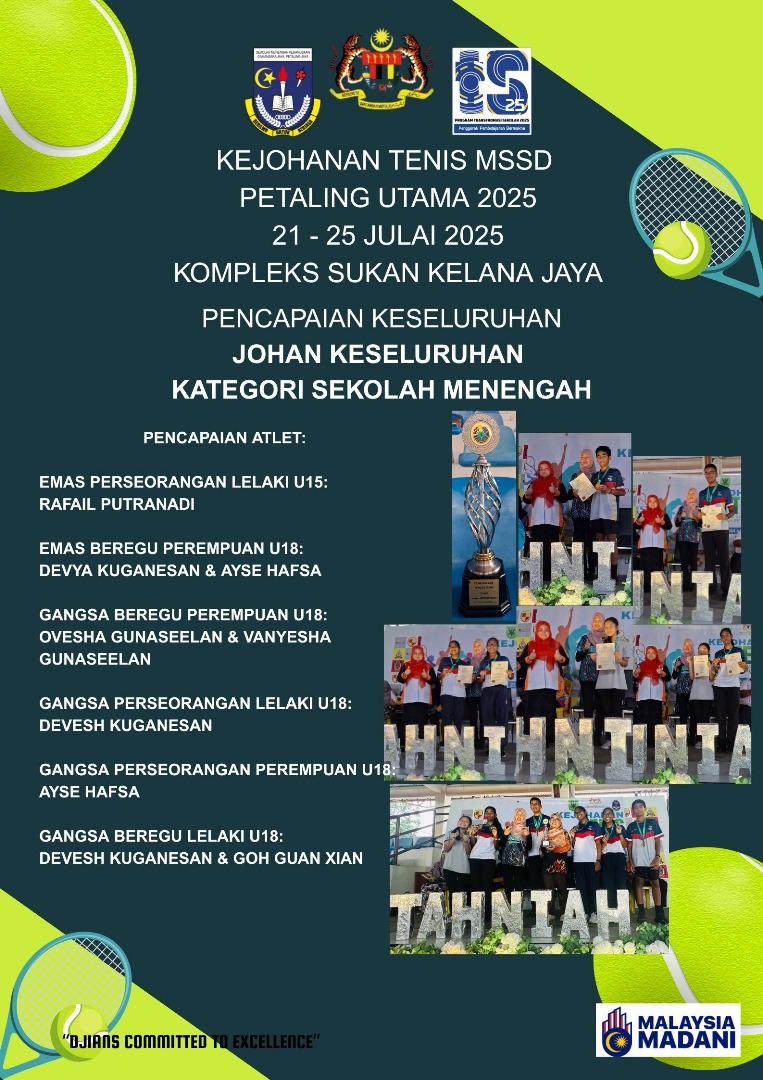 Tahniah diucapkan kepada atlet Tenis SMK Damansara Jaya kerana telah mengharumkan nama sekolah dalam Kejohanan